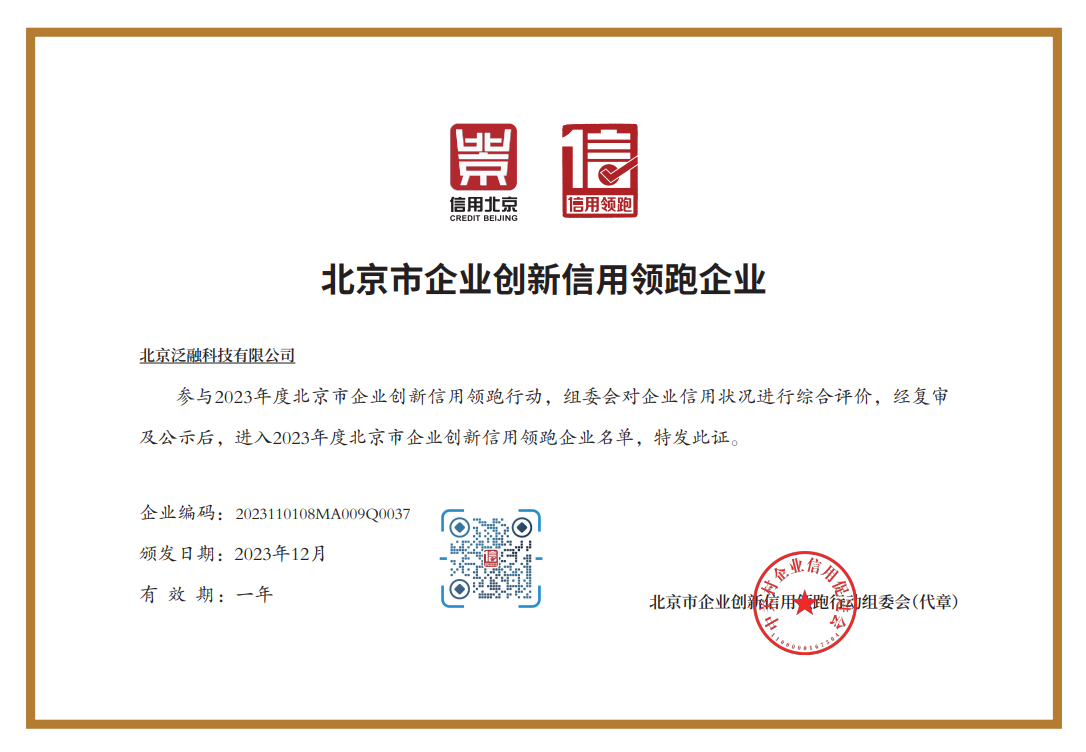918博天堂(中国)和泛融科技获评2023年度北京市企业创新信用领跑企业
